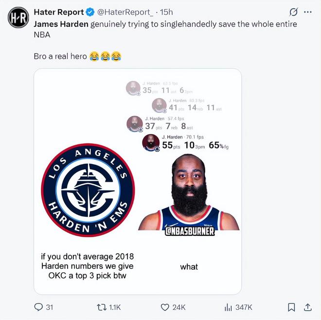 賽后美媒Hater Report寫(xiě)道:真心覺(jué)得詹姆斯-哈登一人拯救了一支NBA球隊(duì),他是真正的孤膽英雄。