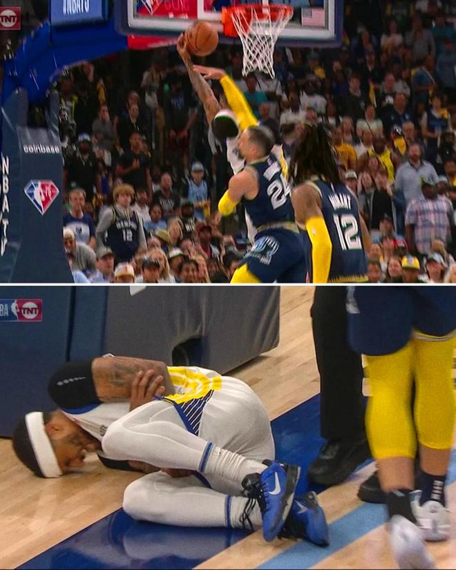 克萊提到的骯臟動(dòng)作是22年勇士季后賽對(duì)陣灰熊,小佩頓上籃時(shí)被當(dāng)時(shí)還效力于灰熊隊(duì)的狄龍拉拽倒地,并在空中被狄龍打到頭部,狄龍當(dāng)場(chǎng)吃到二級(jí)惡犯被驅(qū)逐,小佩頓則遭遇手臂骨折。