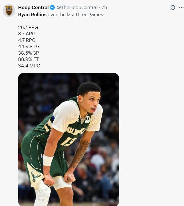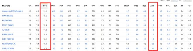 本賽季羅林斯場(chǎng)均31.7分鐘,拿到18.6分5.9助攻2.9籃板1.5搶斷0.3蓋帽,命中率49.3%,三分命中率40.5%,他的得分雄鹿第二,助攻雄鹿第二,2.5個(gè)三分雄鹿第二,他成為了字母哥最大的助力?