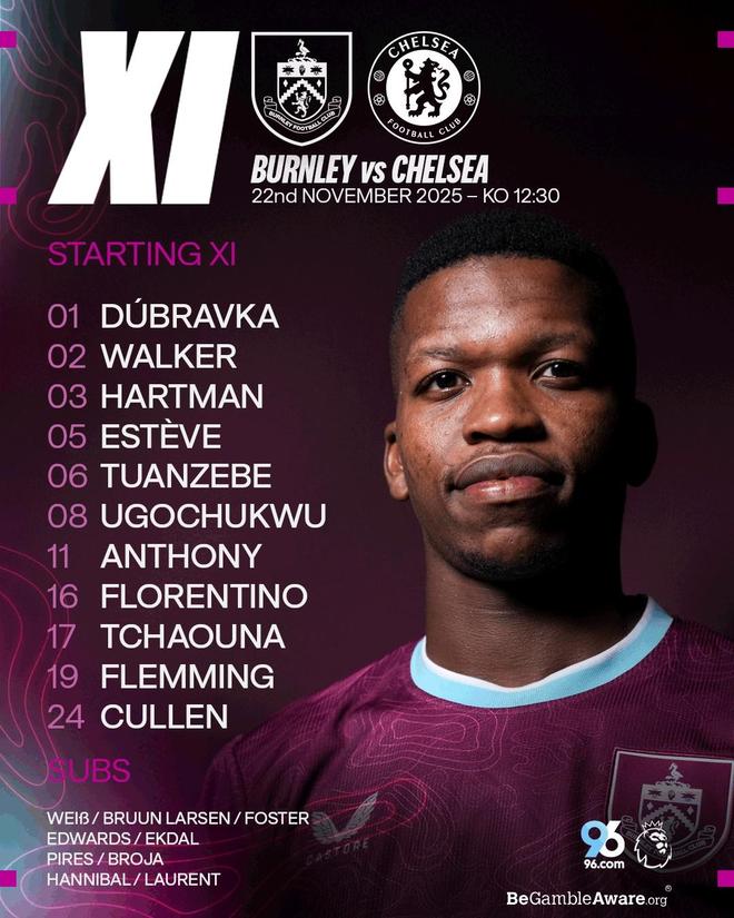 伯恩利首發(fā):1-杜布拉夫卡、2-凱爾-沃克、3-哈特曼、5-埃斯泰夫、6-圖安澤貝、8-烏戈舒庫、11-杰登-安東尼、16-弗洛倫蒂諾-路易斯、17-沙烏納、19-弗萊明、24-庫倫